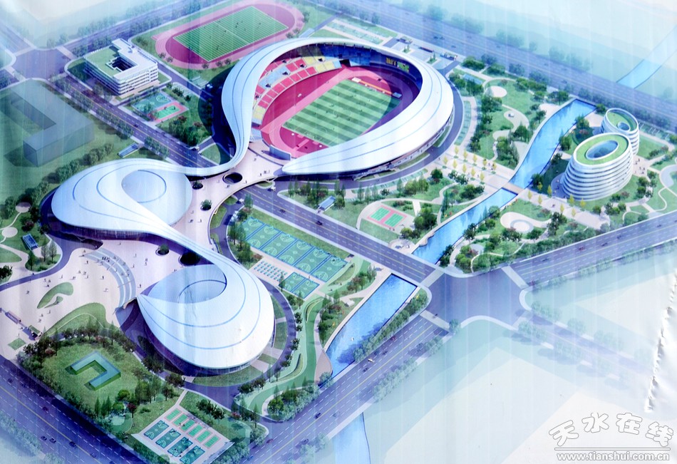 天水市體育中心項(xiàng)目是省、市列重點(diǎn)建設(shè)項(xiàng)目之一。該項(xiàng)目建成后將進(jìn)一步完善我市基礎(chǔ)服務(wù)功能,提升城市品位,滿足全市廣大群眾的健身需求和提高承辦國(guó)際國(guó)內(nèi)賽事活動(dòng)能力。市體育中心項(xiàng)目選址位于天水商貿(mào)城東南面,規(guī)劃片區(qū)為住宅商務(wù)中心區(qū)。北臨天北高速公路,南接羲皇大道,東至羅家溝,西通羲通公交麥積總站。項(xiàng)目總占地面積約436畝,總建筑面積10.5 萬平方米,建設(shè)內(nèi)容為“一場(chǎng)兩館,一校一中心”,即:2萬座的體育場(chǎng)、5000座的體育館、1500座的游泳館、容納500名學(xué)生和70名教師規(guī)模的體育運(yùn)動(dòng)學(xué)校、全民健身中心及地下停車場(chǎng)。項(xiàng)目分三個(gè)功能區(qū):體育賽事服務(wù)區(qū)、全民健身服務(wù)區(qū)、體育教學(xué)訓(xùn)練區(qū)。估算總投資6.43億元(不含征地拆遷費(fèi)用)。