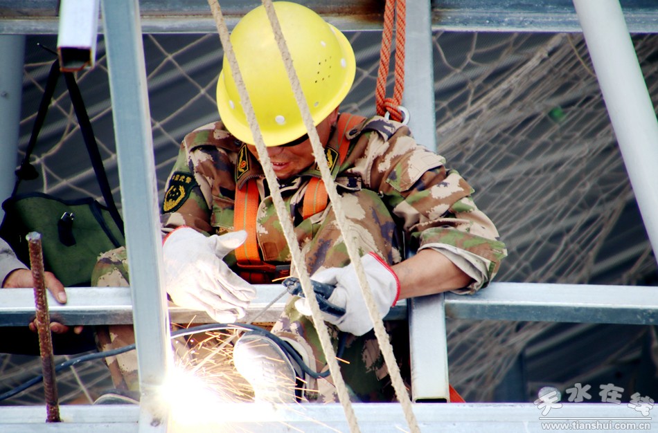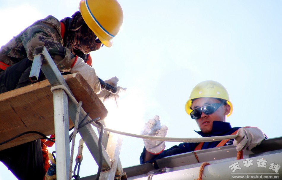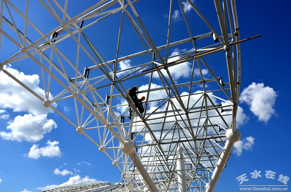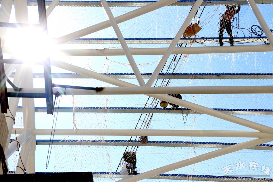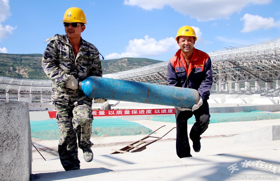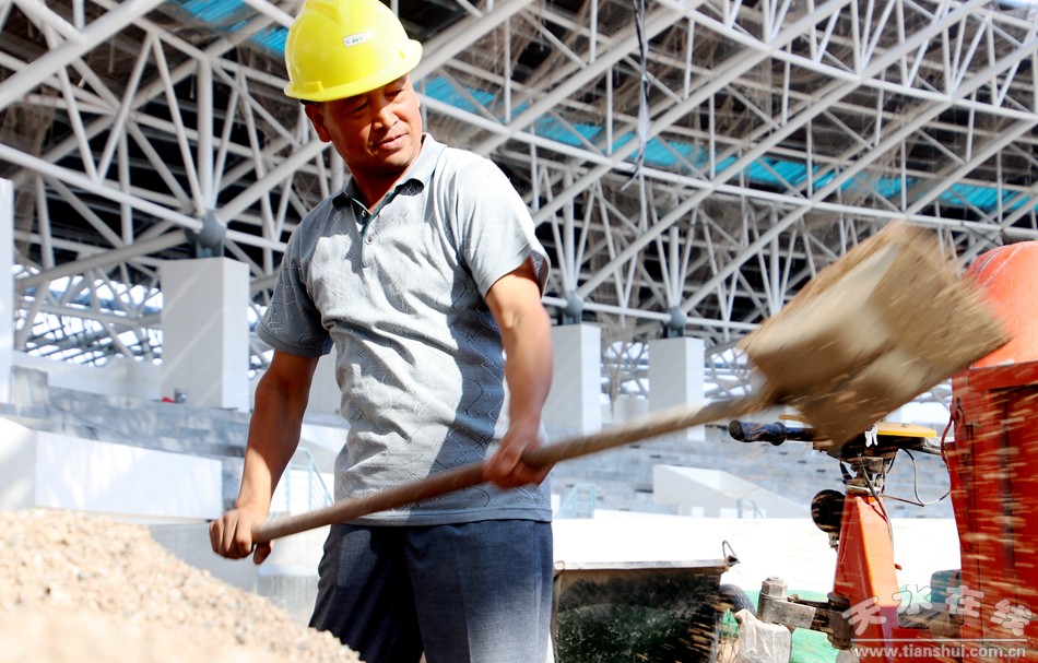 ▲天水市體育中心項(xiàng)目的建設(shè)者