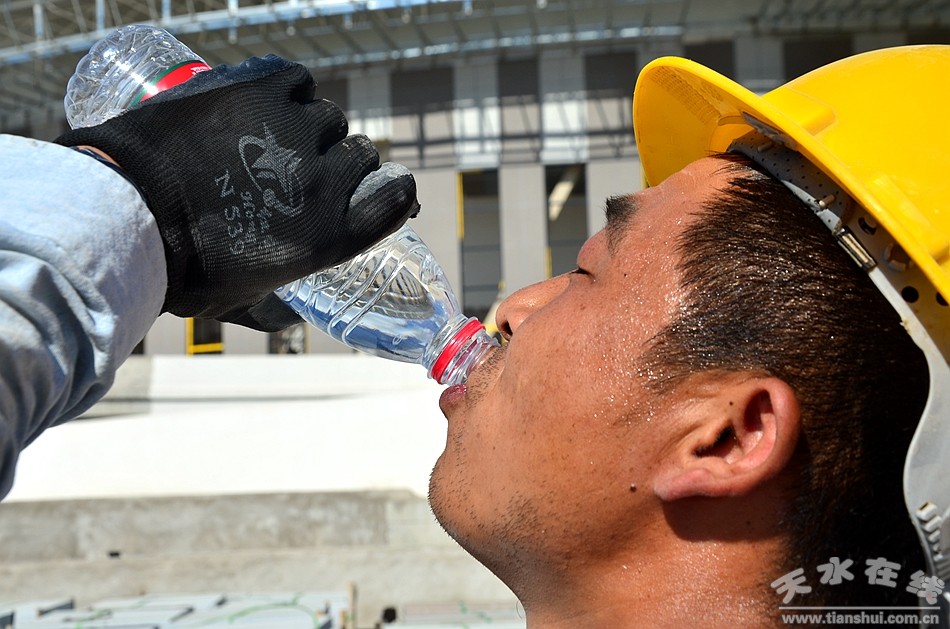 8月9日下午,天水在線走進(jìn)備受全市人民關(guān)注的天水市體育中心項(xiàng)目建設(shè)現(xiàn)場(chǎng)進(jìn)行采訪。同時(shí),向在高溫下堅(jiān)守崗位,全面推進(jìn)項(xiàng)目建設(shè)的勞動(dòng)者送上礦泉水,表達(dá)敬意。 據(jù)悉,天水市體育中心項(xiàng)目于2015年12月10日正式開工建設(shè),預(yù)計(jì)2018年12月底完工。