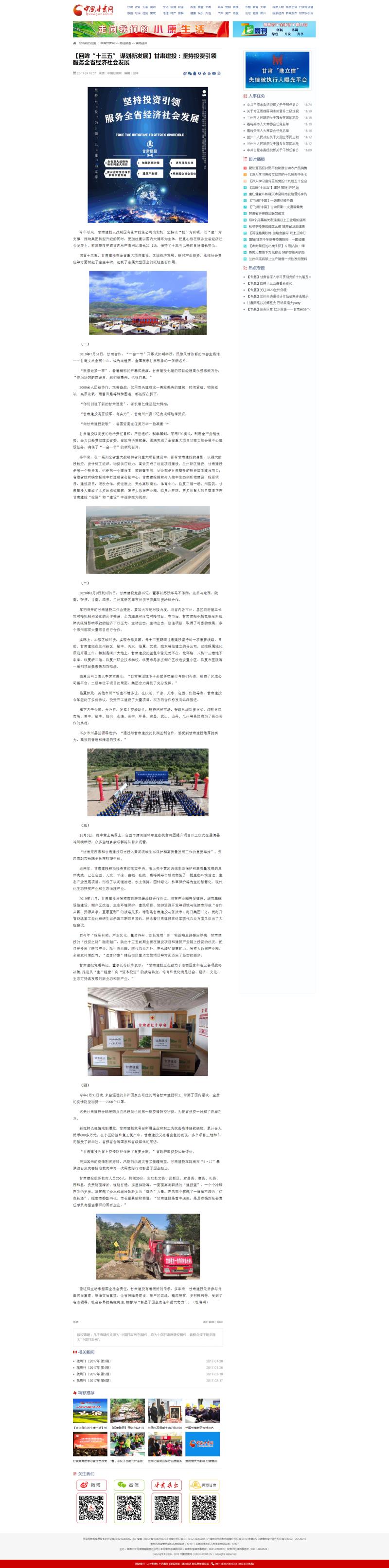 中國甘肅網:【回眸“十三五” 謀劃新發展】甘肅建投:堅持投資引領 服務全省經濟社